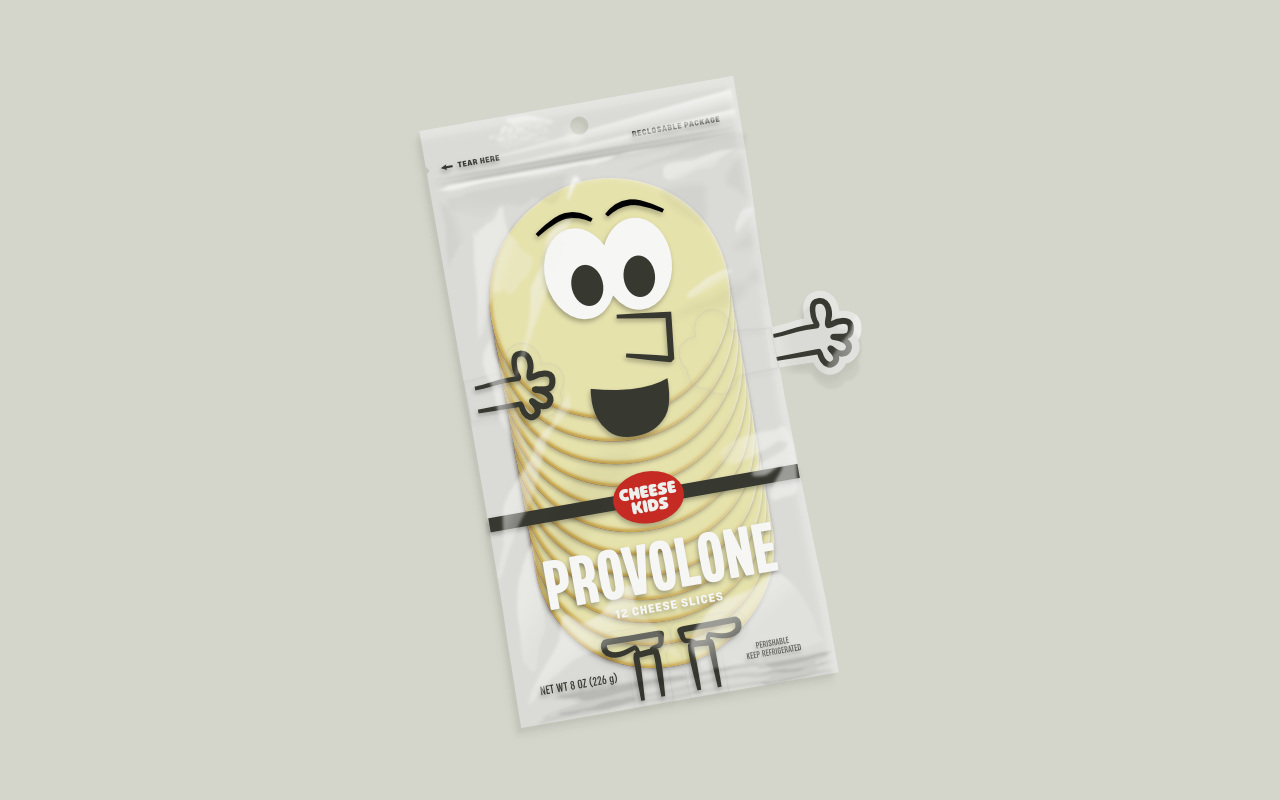 Package of sliced cheese with peelable character features brought along as a snack for children of family friends who had shown up unexpectedly.